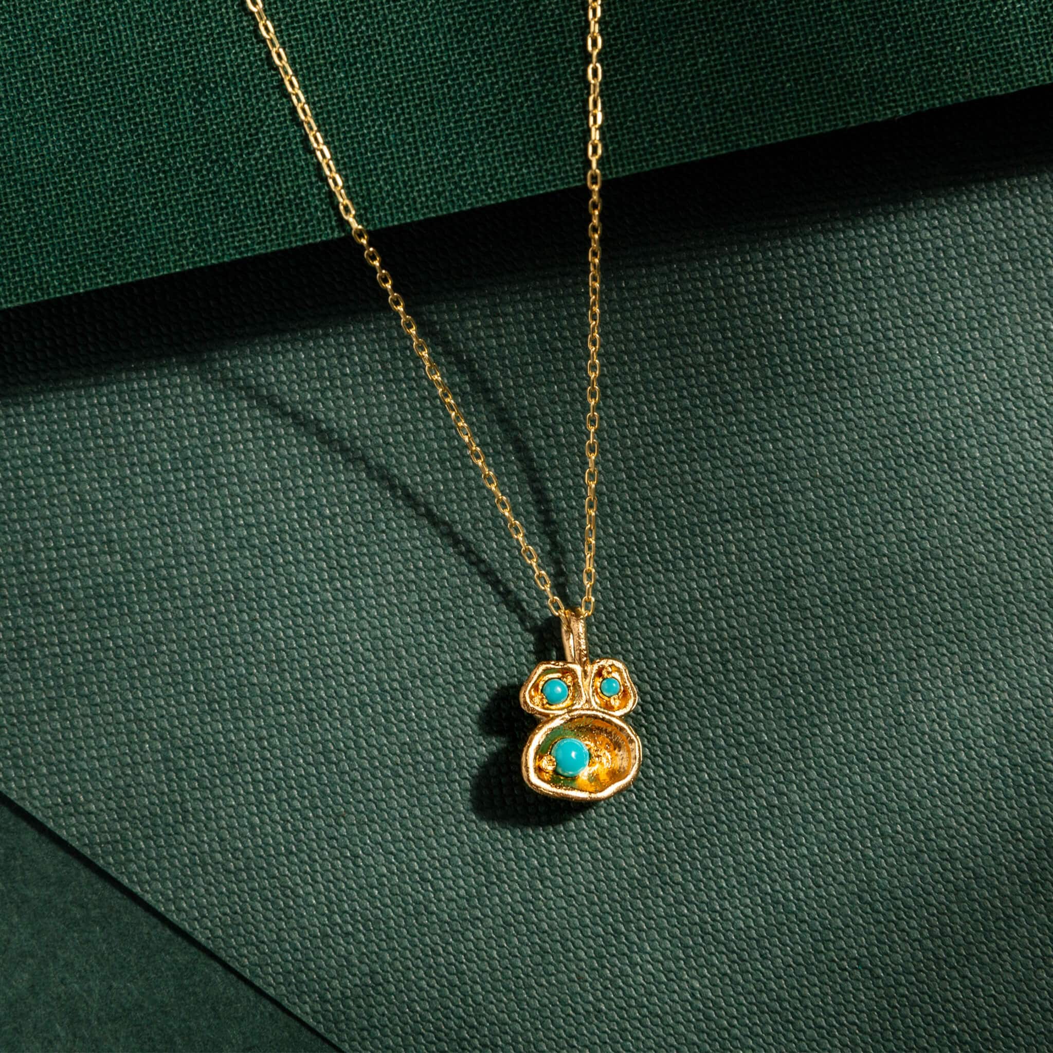 Sent from heaven, this stunning turquoise and gold vermeil pendant gemstone necklace is the ultimate in fine jewellery. This dainty pendant makes an immediate impact and is a reminder of the remarkable world we live in.
