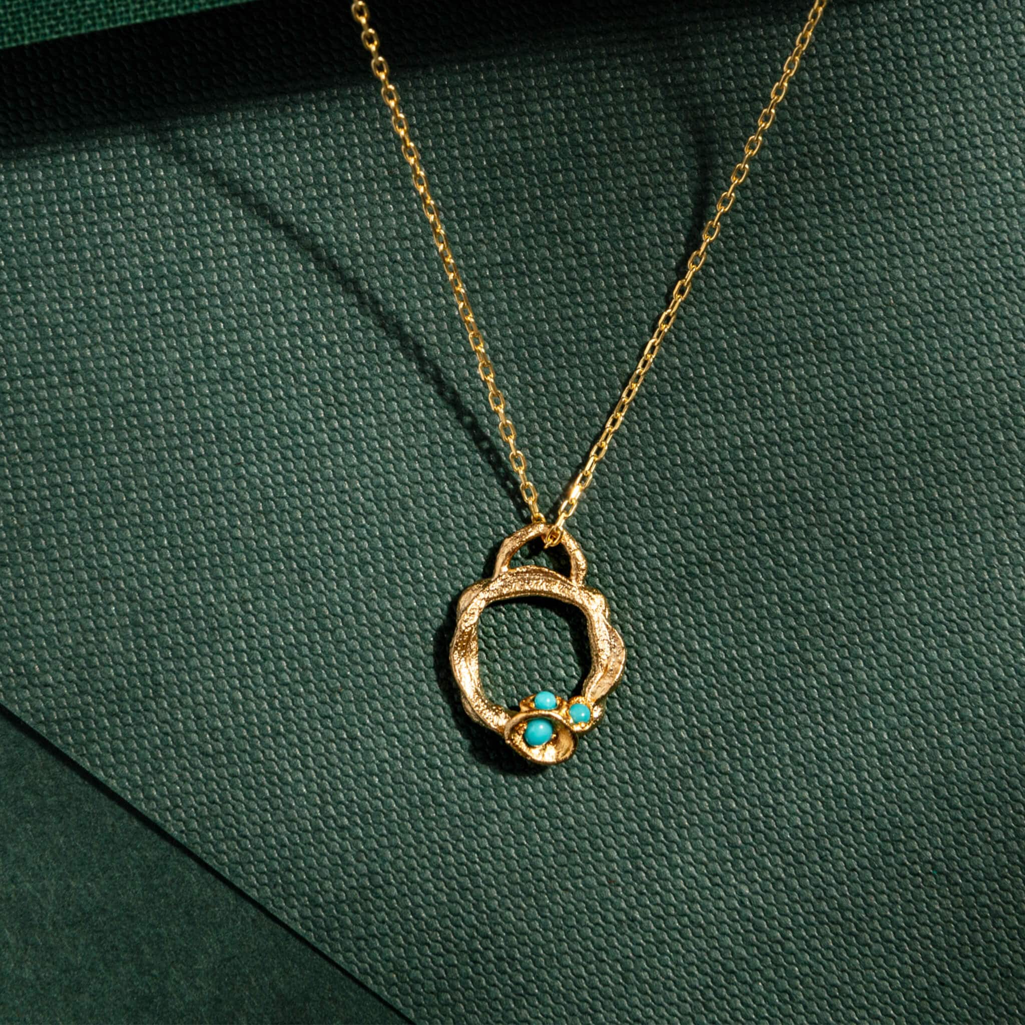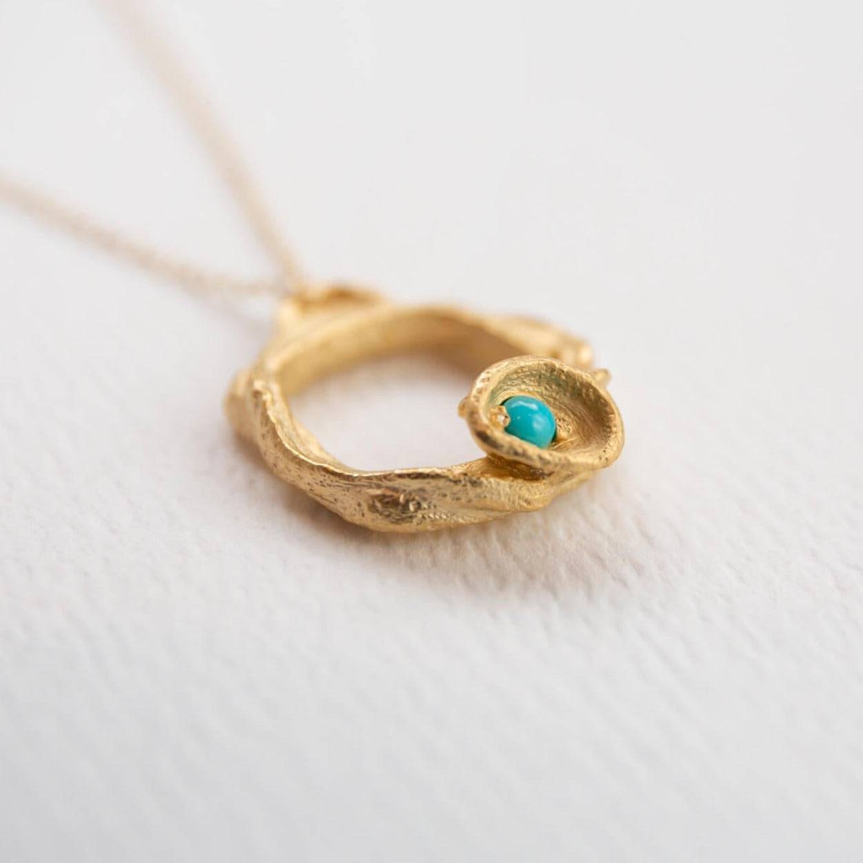 Wear jewellery that tells a story. Sent from heaven, this stunning turquoise and gold vermeil pendant gemstone, is designed to be a modern heirloom with meaning. Using the hidden beauties of our natural world as inspiration, Claire's one-of-a-kind design results in a striking necklace that elevates your outfit and has a hidden meaning.
