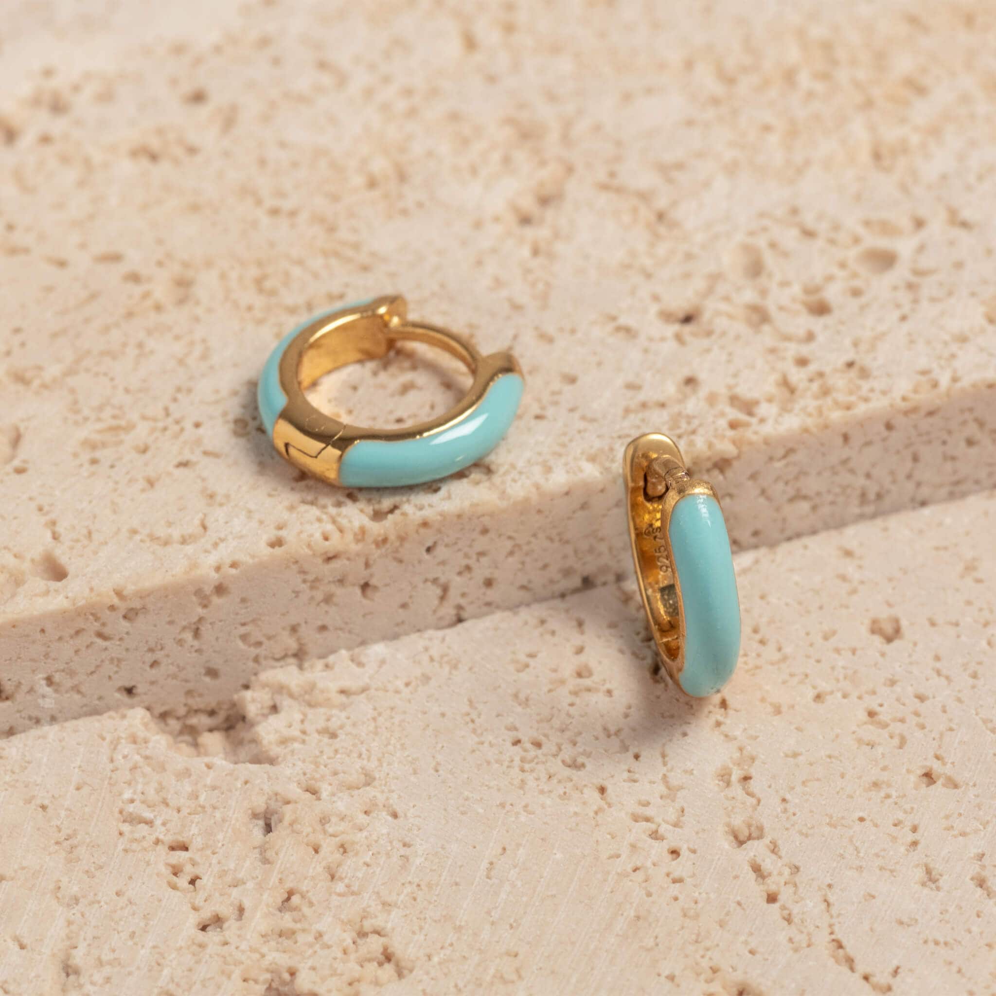 Join the fans of our best-selling turquoise enamel huggie hoop earrings. The flattering blue is an instant mood-lifter and so easy to wear with every outfit in your wardrobe.