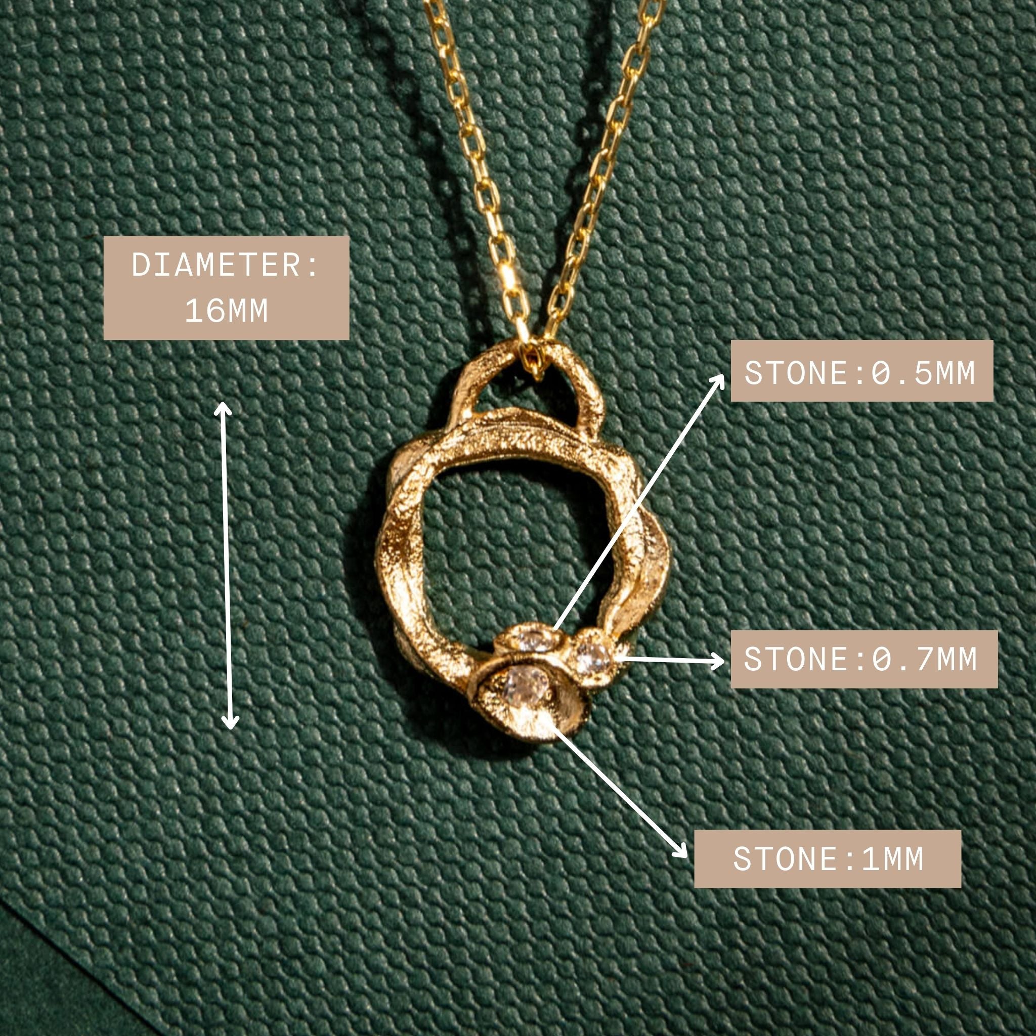 Handmade from an original design by Claire, every element of this stunning dainty pendant has extra symbolism. The circle branch stands for eternity and the lichen represents resilience.