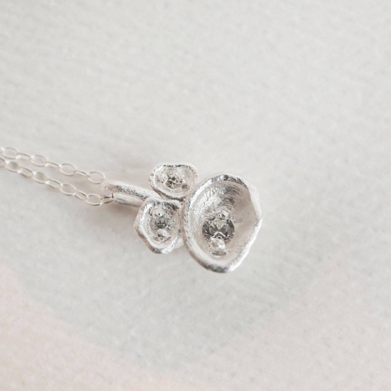 Shimmer with the brilliance of sparkly gemstones with this white topaz and silver pendant necklace. The dazzling and dainty pendant is handmade using luxury materials and is designed to stand out from the crowd. Made for the knowledge seekers.