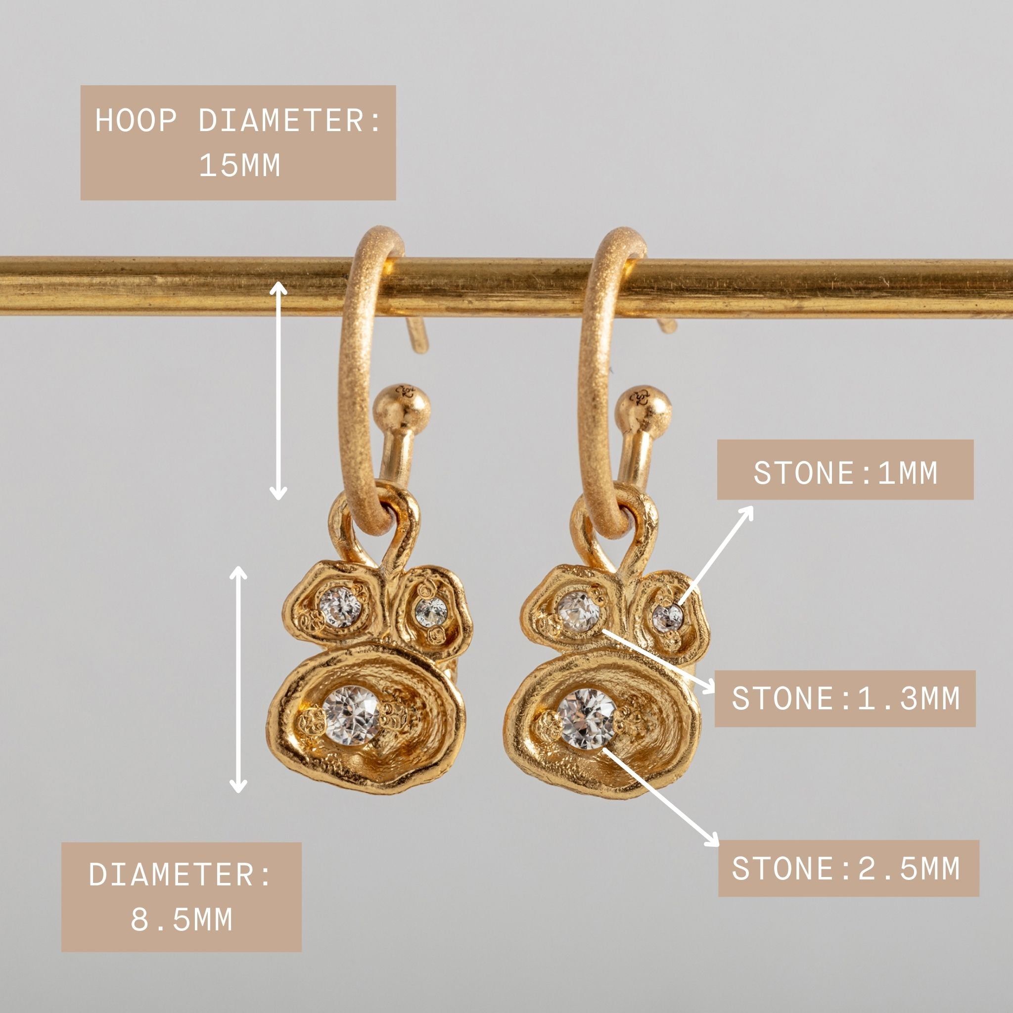 White Topaz Gold Lichen Hoop Earrings