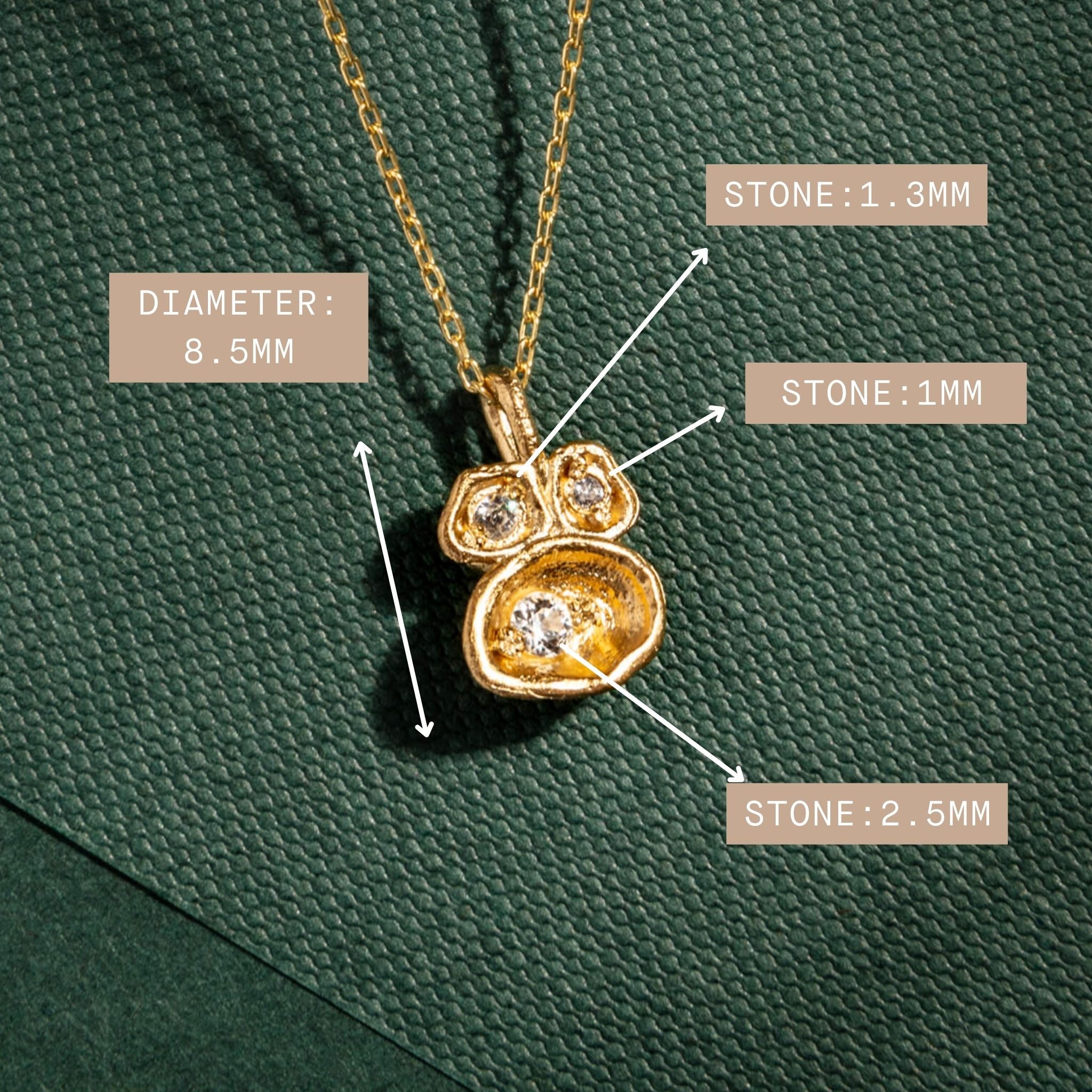 As part of the Birthstone collection, Claire took inspiration from one of nature's most resilient creations, the lichen, to design this three-drop pendant. Often overlooked, it is resilient and thrives slowly at its own pace, reminding us to stay true to ourselves and walk our own path.