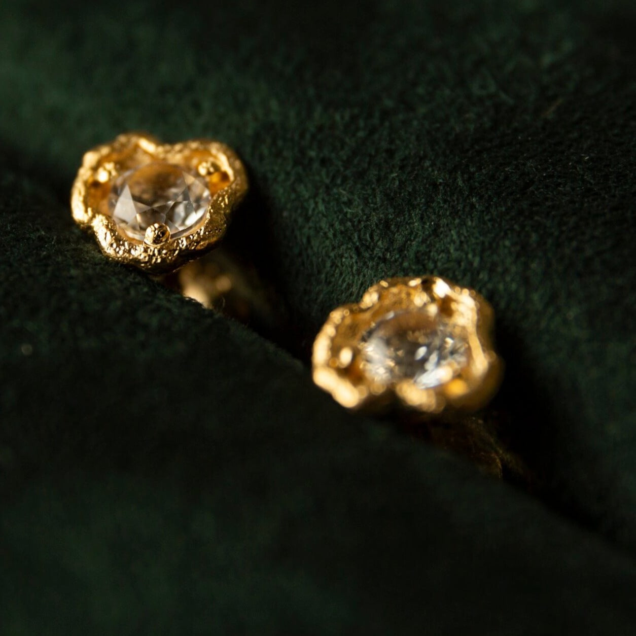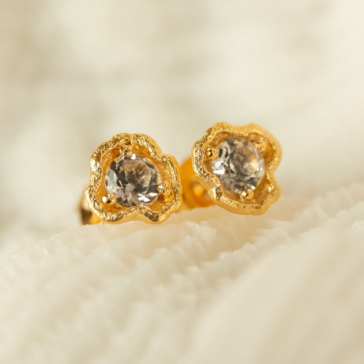 White Topaz Gold Lichen Stud Earrings